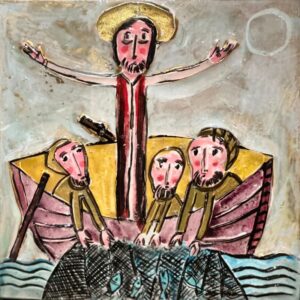 Er beschäftigt sich hauptsächlich mit Hinterglasmalerei und experimentiert dabei mit verschiedensten Techniken.